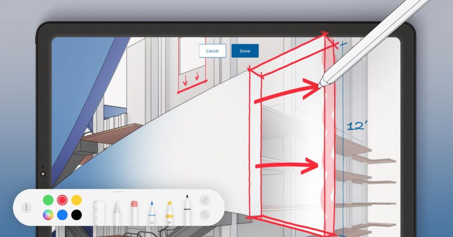 Mezi další zajímavé iPad funkce patří třeba Markup mode, který dovoluje doplnit do 3D projektu překryvné anotace, poznámky a zvýraznění pomocí různých stylů a barev. Díky integrovanému fotoaparátu iPadu je zase možné do projektu snadno přidat skutečnou právě pořízenou fotografickou texturu nebo zasadit svůj 3D model do reálného prostředí pomocí režimu rozšířené reality (Augmented Reality) a podívat se nebo prezentovat své návrhy ze zcela nové perspektivy.