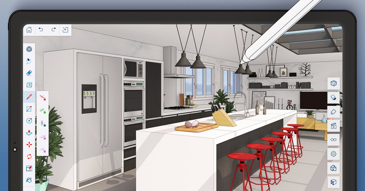 Největší předností práce ve SketchUp pro iPad je, že díky stylusu, který držíte v ruce jako tužku, používáte kreslící nástroje téměř stejně jako na papíře. Z toho vyplývají další zajímavé vlastnosti SketchUp pro iPad, mezi které patří např. režim Autoshape, kdy něco skicnete do prostoru a inteligentní algoritmus to přemění na rovnou čáru, korektní kružnici nebo třeba obdélník včetně vytažení do 3D.