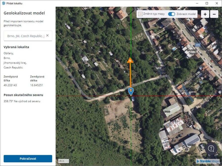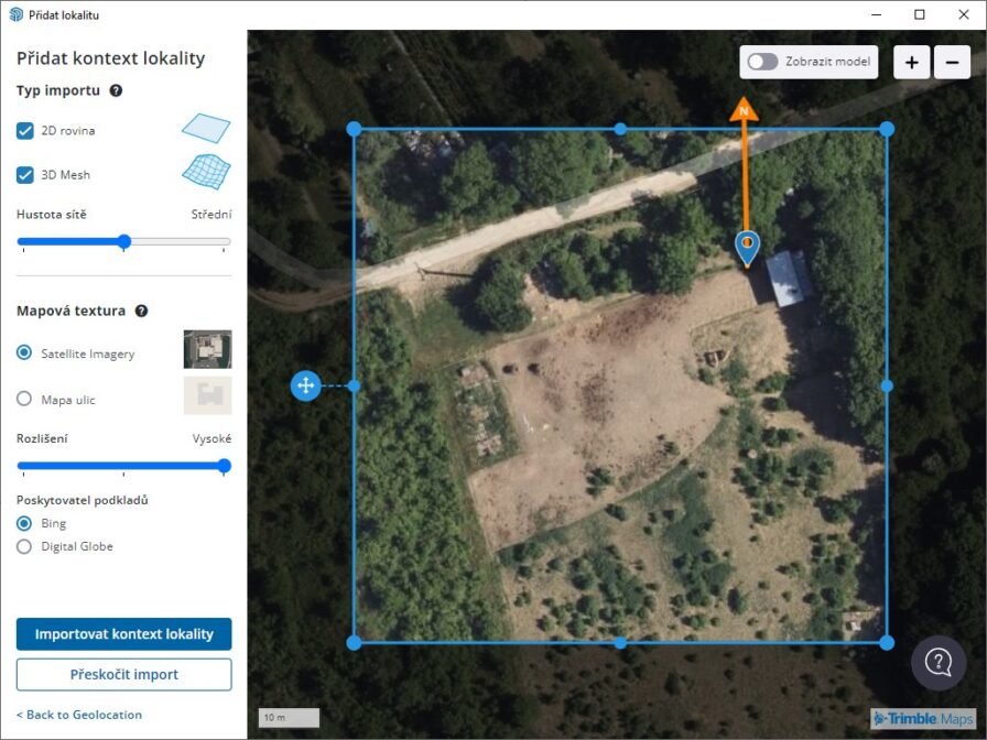Díky nové a vylepšené funkci Přidat polohu je geografické určování polohy Vašeho modelu a import podrobných dat terénu snazší a předvídatelnější než dříve, zejména u rozsáhlých importů. V nové aktualizované verzi můžete importovat větší oblasti, řídit hustotu sítě terénu a zobrazit sever i Vaši polohu.