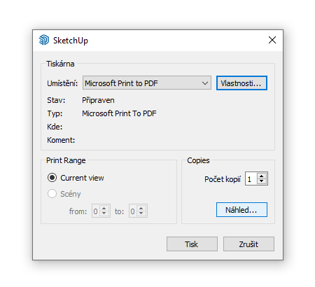 Byly zjednodušeny možnosti tisku ve SketchUpu pod Windows. Funkce tisku v OS Windows se stala výrazně nestabilní. A protože velká část této funkce je k dispozici již dlouhodobě v LayOutu a ve většině případů je mnohem výkonnější a nabízí mnohem širší možnosti, rozhodl se vývojový tým ukončit podporu některých funkcí tisku ve SketchUp 2023.1.