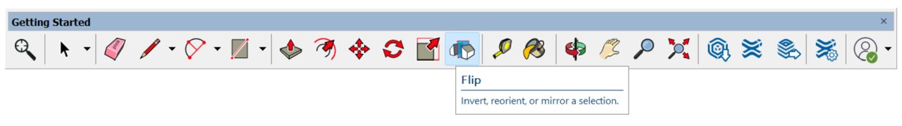 SketchUp 2023 představuje nový nástroj a novou ikonu Převrátit (Flip), která nahrazuje dřívější funkci Převrátit podél (Flip Along) z kontextového menu. Od základu přepracovaný příkaz zcela odstraňuje potřebu „uhádnout“ směr orientace převrácení dle dané osy a výrazně tak zjednodušuje převracení vybrané geometrie v prostoru a vytváření symetrické kopie (zrcadlení).