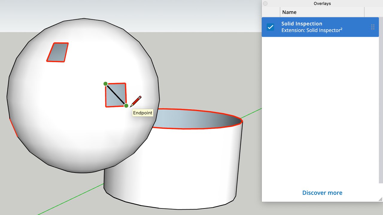 Můžete například použít nejnovější aktualizaci užitečného pluginu Solid Inspector, nyní s možností překrývání, pro analýzu a zjišťování problémů s Vašimi objemovými tělesy, zatímco je vytváříte nebo průběžně opravujete.
