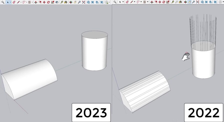 Formát SketchUp 2023 je vzájemně zpětně kompatibilní s verzemi SketchUp 2022 a 2021, tzn. že i verze 2021 umožňuje otevřít projekty vytvořené ve verzi 2023 bez nutnosti jakéhokoliv přeukládávání.