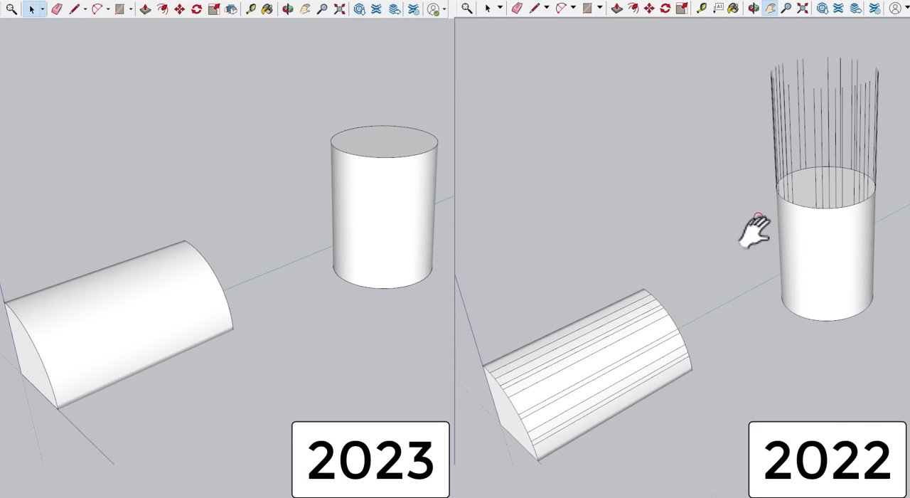 Občas se do modelu načtou komponenty (například z 3D Warehouse) obsahující roviny řezu a nastavený aktivní styl Vašeho projektu je v konfliktu s uloženými vlastnostmi viditelnosti roviny řezu v komponentě. Ve verzi SketchUp 2023 jsme zajistili, že nastavení Vašeho modelu má přednost a v případě importu těchto komponent je respektováno aktuální nastavení stylu.