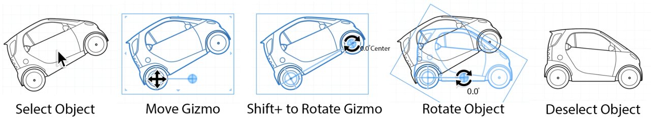 Vyberte objekt (obr.1), v případě potřeby přesuňte takový ten tentononc (Gizmo) do místa požadovaného středu otáčení (2). Potom podržte SHIFT což Vám místo okamžitého otáčení dovolí pomocí stisknutého tlačítka myši nejprve nastavit počáteční úhel 0 stupňů (3) a následně myší otočíte objektem do požadované pozice (4). Úhel lze rovněž zadat přesnou číselnou hodnotou. Zrušte výběr kliknutím mimo (5) a je hotovo.