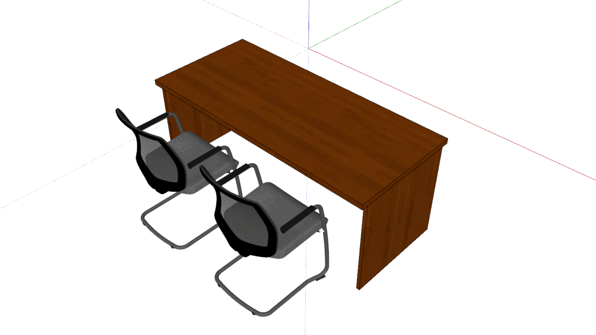 Tento postup se hodí v případě, kdy nám nevyhovuje výchozí pozice roviny na středu objektu, ale potřebujeme si ji posunout na jiné vhodné vybrané místo. V našem příkladu se jedná o židle, které chceme jednak zkopírovat na druhou stranu stolu a zároveň je zrcadlově otočit tak, aby byly ve výsledku orientovány čelem k nám a umístěny ve stejné vzdálenosti od stolu jako židle původní.