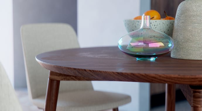 Vytvářejte duhové efekty jako jsou např. mýdlové bubliny s novou vrstvou Thin Film nyní dostupnou mezi pokročilými V-Ray materiály.